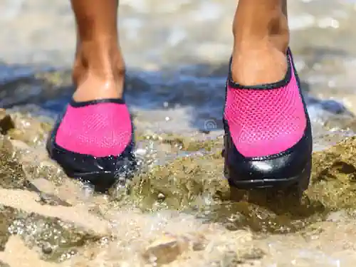 - Lleve sandalias de goma o zapatillas de agua especiales, para la playa o para el agua. ¡NO CAMINE DESCALZO EN LA ARENA!