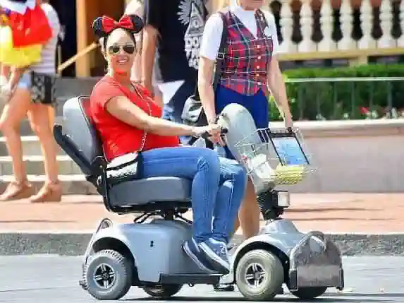 El uso de Scooters Eléctricos para movilidad (no son motos) es muy habitual en Estados Unidos, los parques, atracciones y los transportes están preparados para su trasado e ingreso. Tambíen son fáciles de desarmar y cargar en baúles de coches (o se pueden alquilar en cada parque a diario).